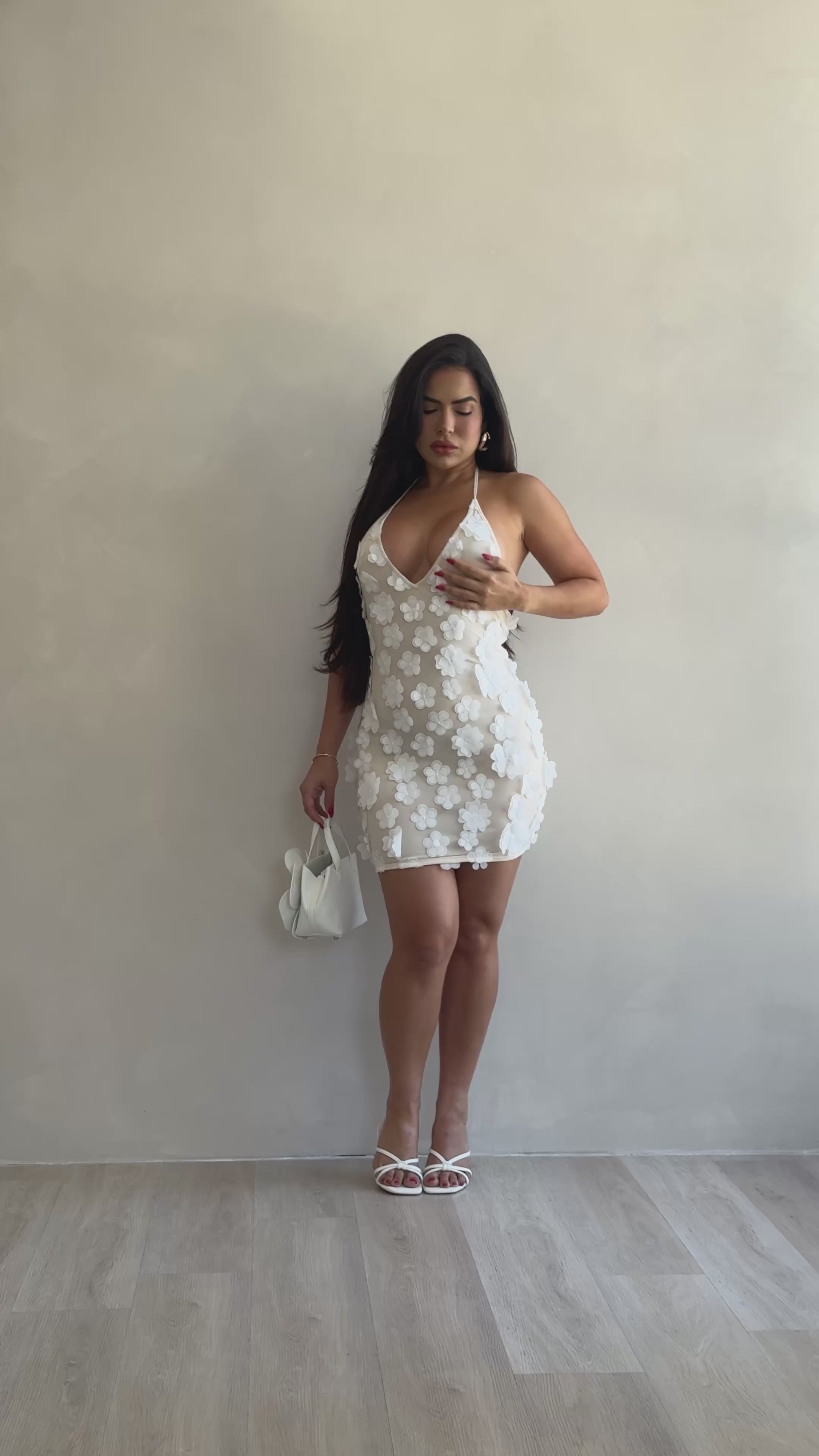 - Playful yet dreamy, this mini dress is adorned with blooming 3D florals that add texture and whimsy to every step. With a flirty silhouette and delicate straps, it's the perfect piece for garden parties, bridal events, or simply feeling like you're in a fairytale.