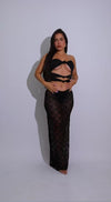 Tangled Temptation Lace Floral Skirt Set Black