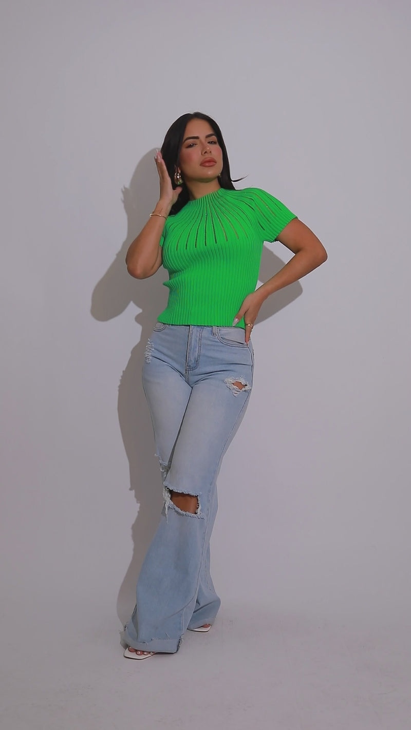 The Vibe Line Tee Ribbed Long Top Green Sale price$ 20.00 Regular price$ 40.00