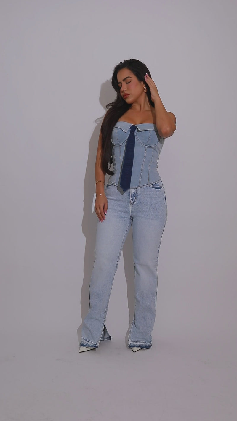The French Muse Tie Corset Light Denim Sale price$ 25.00 Regular price$ 50.00