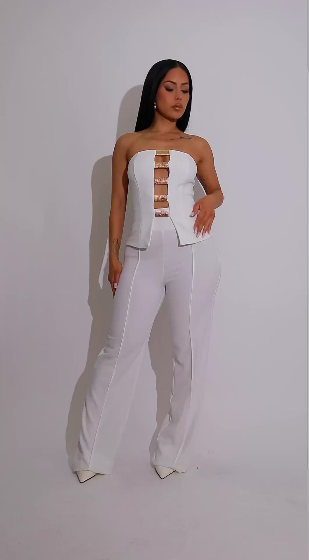 - Unleash your power presence with the Ember Edge Set — a structured pant ensemble designed to command attention. Featuring bold ladder detailing and a sleek zip sleeve finish, this set is where fierce tailoring meets contemporary flair. Ideal for making your mark from day to night.