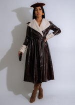 - The Midnight Glacier Coat merges sleek modernity with cozy comfort, making it the ultimate statement piece for cold weather. Featuring a glossy finish contrasted by plush, textured accents, this coat is designed to keep you warm while elevating your look. The structured silhouette and bold collar add an edge of sophistication, perfect for embracing chilly days with style. Whether worn in the city or on a winter escape, the Midnight Glacier Coat ensures you step out in confidence and warmth.