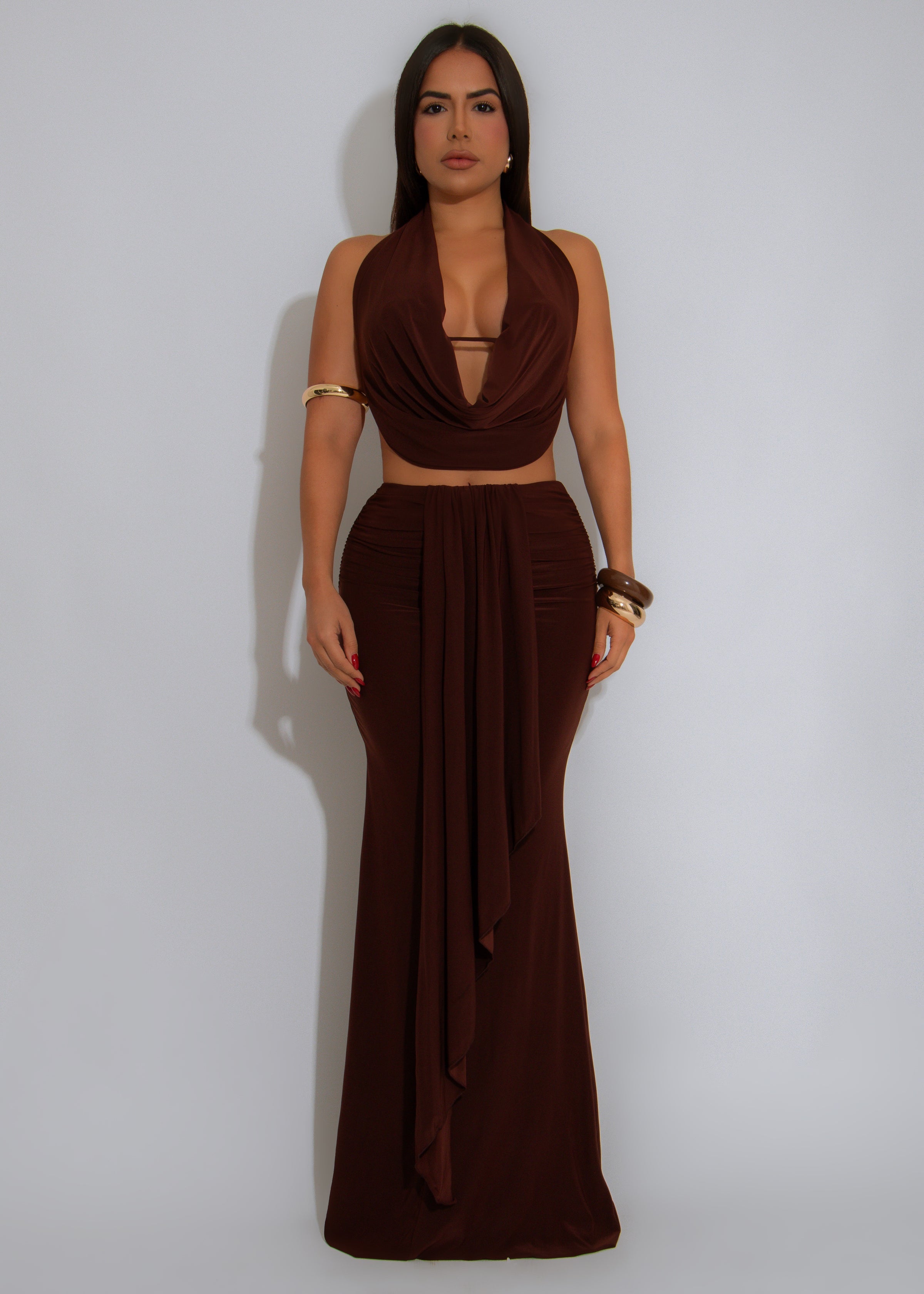 • Turn up the heat in the Sahara Heat Skirt Set. With bold cutout details and perfectly placed ruching that contours every curve, this two-piece is your go-to for effortless glam and high-impact allure.