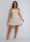- Redefine tailored elegance with the Soft Authority Set—a structured silhouette that speaks confidence while keeping things effortlessly refined. The off-shoulder detail and mini skirt add just the right touch of charm to this modern classic.