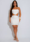 • This flirty knit mini dress features a playful cutout and soft texture for that perfect mix of cozy and sultry. Designed with a draped neckline and sleek silhouette, it’s your go-to for effortless edge and all-day comfort.
